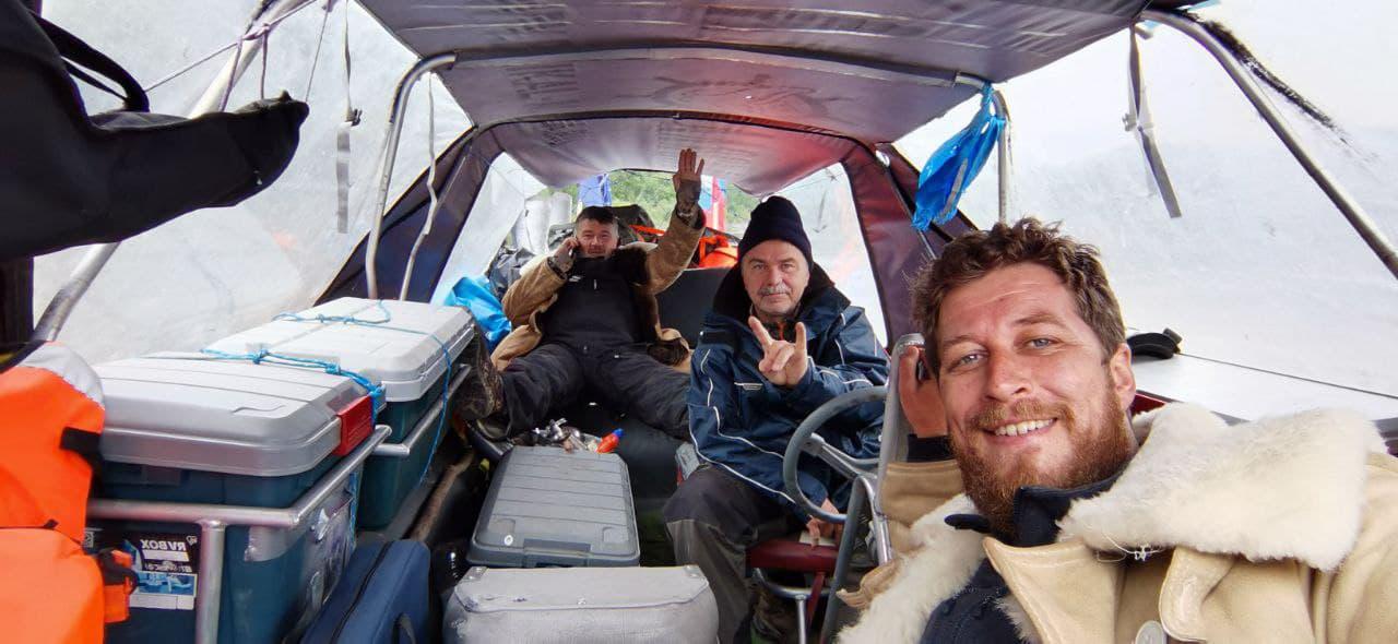 Капитан Анатолий Казакевич, участники Александр Ломп и Андрей Прудников пришвартовали тримаран «Искатель-3» в Благовещенске. Он стал первым большим городом на пути после вынужденной остановки из-за чрезвычайной ситуации на Амуре.