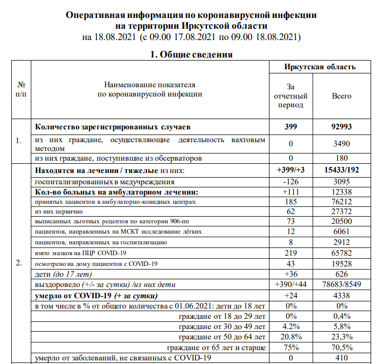 Прирост на 18 августа составил 399 человек.
