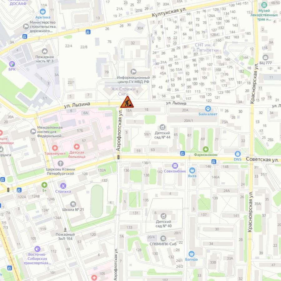 Также движение ограничат по улице Лызина в районе дома №18а с 12.10.21 08:00 до 19.10.21 17:00 по правой полосе проезжей части улицы Лызина на пересечении с улицей Аэрофлотская.