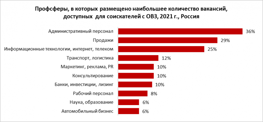 В этом году в России было размещено больше 187 тысяч вакансий, на которые могут претендовать соискатели с ОВЗ, это 3% от всего объема предложений о работе в стране.