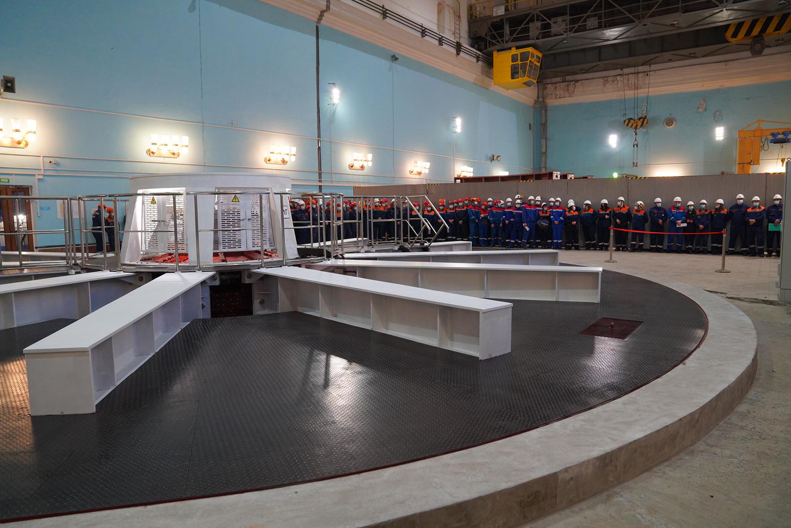 Для установки нового гидроагрегата на предприятие было доставлено более 1500 тонн оборудования, произведенного на российских заводах – АО «ТЯЖМАШ» (г. Сызрань) и ПАО НПО «ЭЛСИБ» (г. Новосибирск). Строительно-монтажные работы в машинном зале станции больше года велись в круглосуточном режиме.