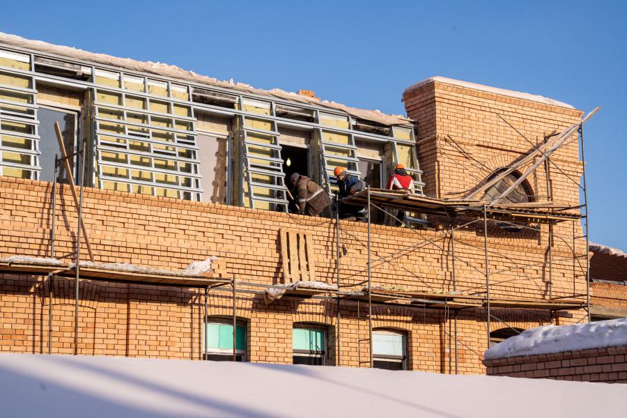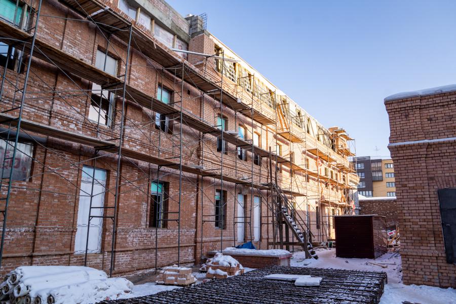 Для восстановления исторических фасадов используют специальный реставрационный кирпич, который стоит в несколько дороже обычного облицовочного. Реставрационные работы ведут круглый год с применением технологии теплого строительного контура.