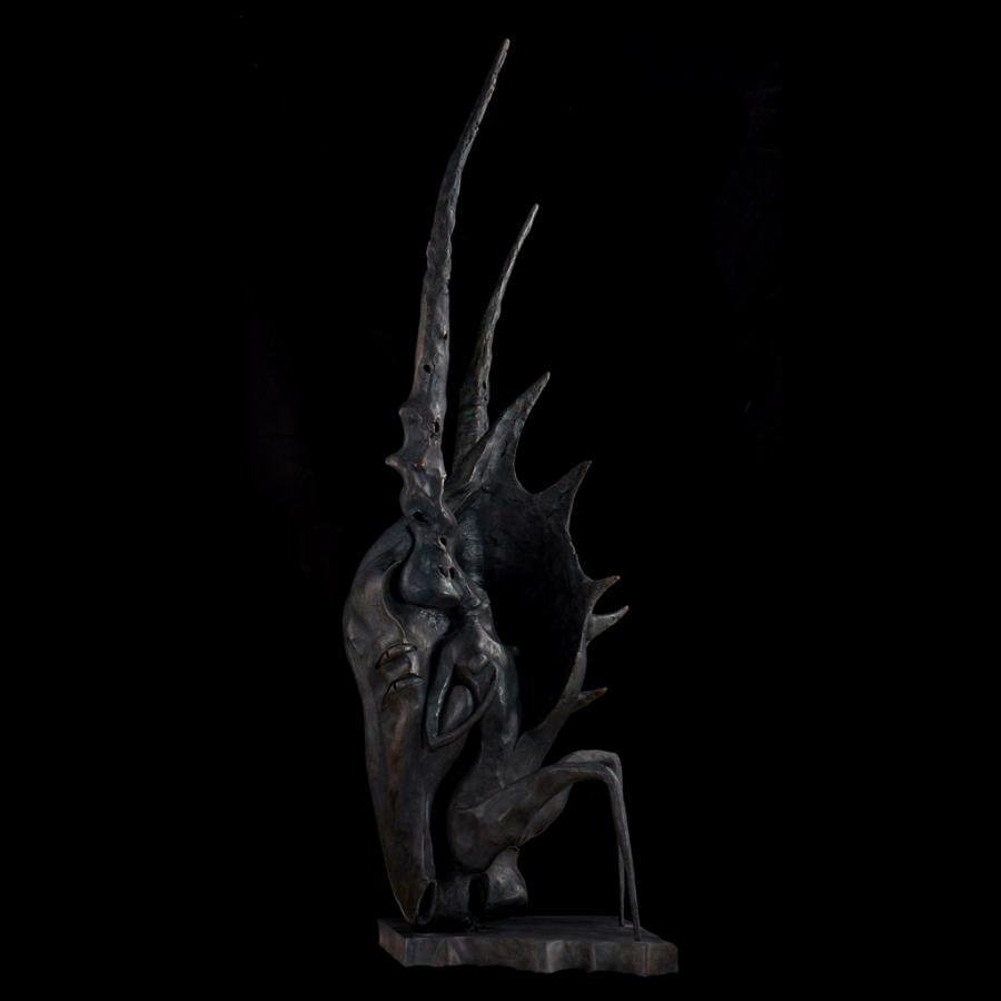 В новых работы скульптор предлагает увидеть, как за явным прячется скрытая от посторонних глаз изнанка. В чертах воительниц – «Обнаженной» и «Спящей амазонки» – сочетаются драматизм и трепетность, нежность и сила. Скульптура «Слияние» – это сюрреалистический образ, рожденный из фантазии мастера и древних мифов: из головы морского существа появляется прекрасная девушка.