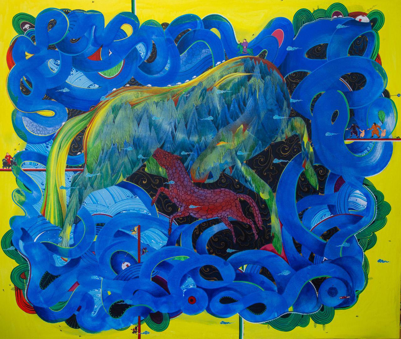 Центральный образ экспозиции – конь – символ степи, друг и верный спутник кочевника. Каждый автор по-своему раскрыл его: это и крылатый Хий Морин, и мифический кентавр, и боевой конь – соратник воина, и вольные дикие лошади. На ярких полотнах также появляются образы родной природы, отважного героя, женщины-хранительницы очага.