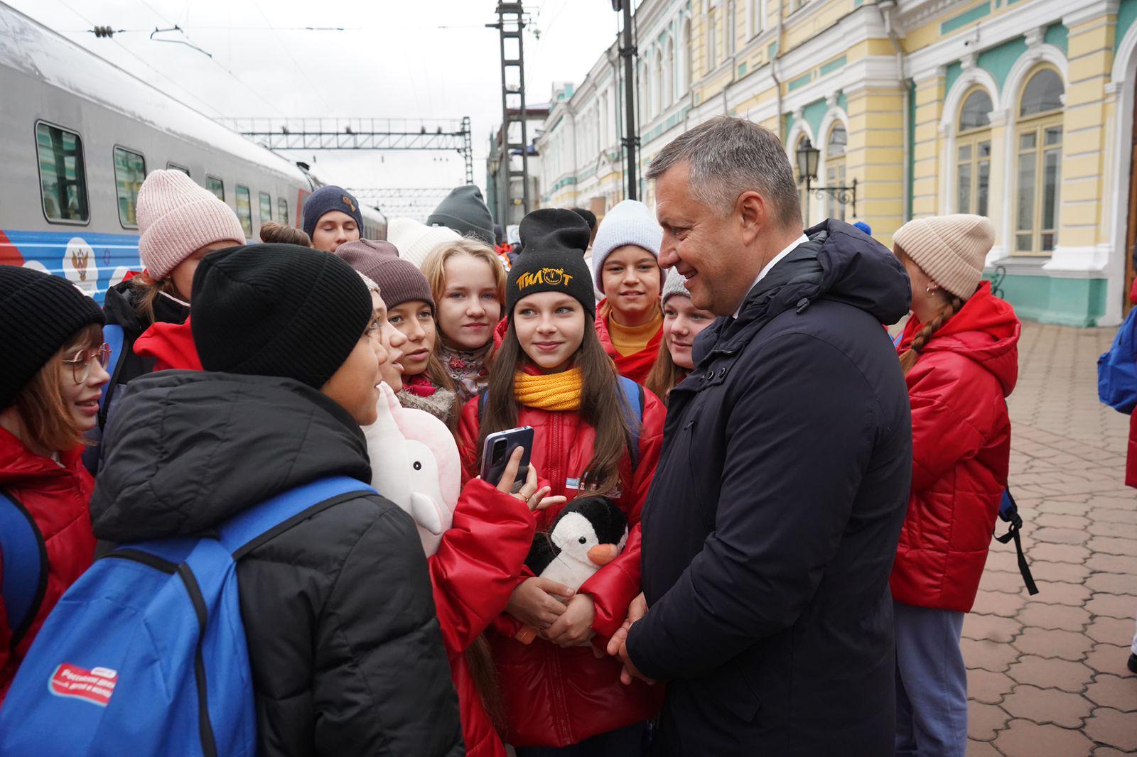 В Иркутск сегодня, 27 сентября, прибыл поезд, на котором путешествуют школьники 5-7 классов – победители Всероссийского конкурса «Большая перемена». Маршрут следования Владивосток – Санкт-Петербург. С ребятами встретился губернатор Иркутской области Игорь Кобзев, передают в пресс-службе правительства региона.