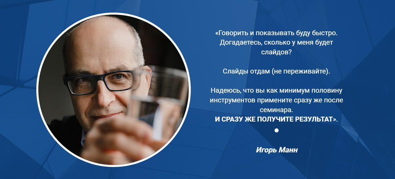 Семинар Игоря Манна "60+ Новых и лучших инструментов маркетинга без бюджета" для предпринимателей, директоров, маркетеров.