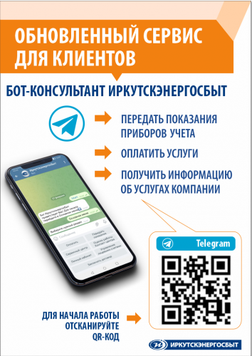 Новый сервис Иркутскэнергосбыта позволяет клиентам передавать показания счетчиков в востребованном мессенджере Telegram, оплачивать коммунальные услуги, уточнять справочную информацию. Достаточно запустить бота по ссылке и далее следовать его подсказкам. Telegram-бот – это персональный помощник в смартфоне, он подскажет как быстро решить коммунальные вопросы, не отвлекаясь от общения с близкими в популярном сервисе.