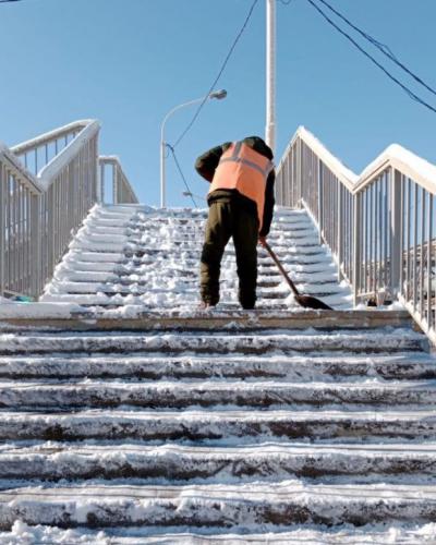 Силами МУП «Служба эксплуатации мостов» ведется уборка пешеходных и автомобильных мостов, путепроводов. Особое внимание уделяют лестницам, а также пешеходным зонам.