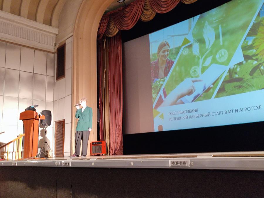 В рамках лекции «От слов к делу» Наталья Баркова рассказала о современных возможностях РСХБ в сфере дополнительного образования, прохождения оплачиваемых стажировок и практик, актуальных инструментах профориентации и возможностях платформы «Я в Агро».