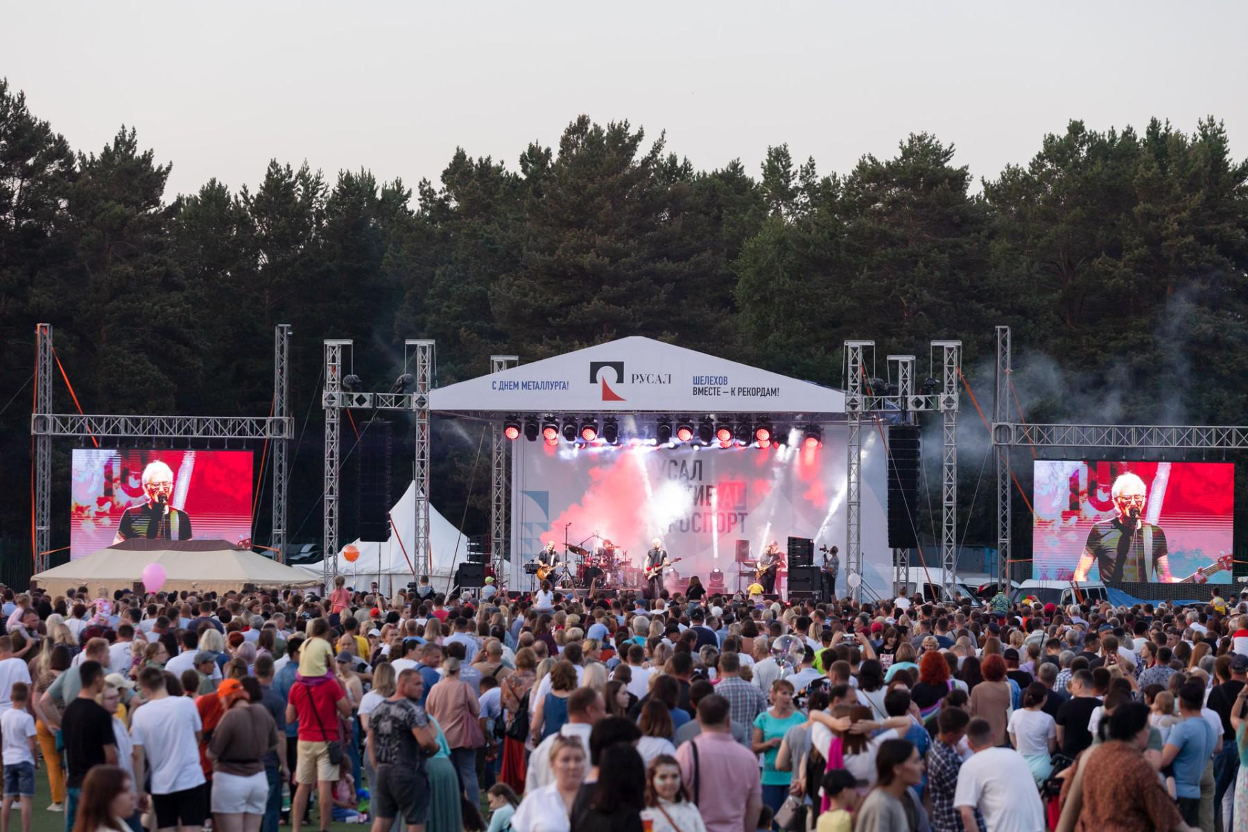 На сцене стадиона «Металлург» горожан поздравляли творческие коллективы Иркутской области – группы «Зарев цвет» и «BURRN».