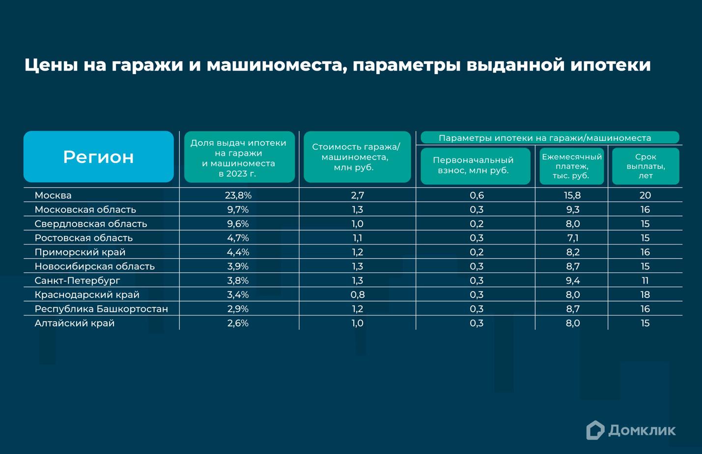 Сколько стоят гаражи и машино-места и каковы параметры выданной ипотеки