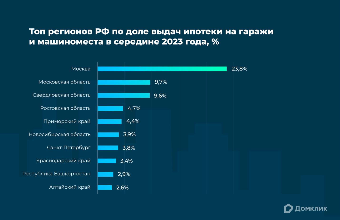 Аналитический центр Домклик Сбербанка изучил ипотечные сделки по приобретению гаражей и машино-мест и подготовил рейтинг субъектов РФ с наибольшим количеством выдач в 2023 году.