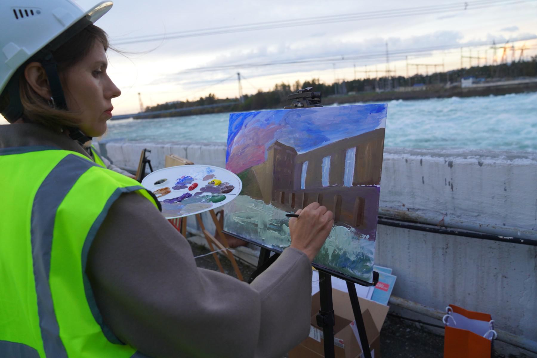 Переда началом работы участникам творческого вечера рассказали о работе ГЭС и предоставили возможность увидеть холостые сбросы вблизи. Изумрудная вода и закатное небо над Ангарой стали основным сюжетом для работ в этот вечер. Освоить кисти и краски новичкам помогала известный иркутский живописец и искусствовед, член Союза художников России и ассоциации изобразительных искусств ЮНЕСКО Регина Присяжникова.