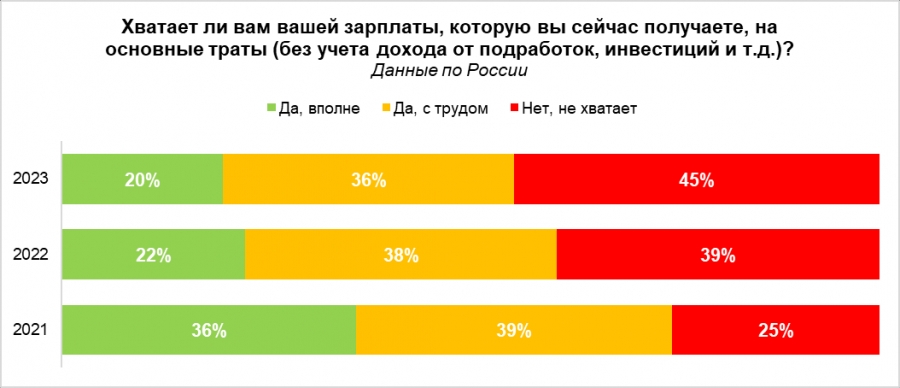 Только 19% опрошенных жителей Приангарья сообщили, что им вполне хватает их текущей заработной платы на основные нужды. Еще 27% отметили, что денег на основные нужды им хватает, но с трудом.