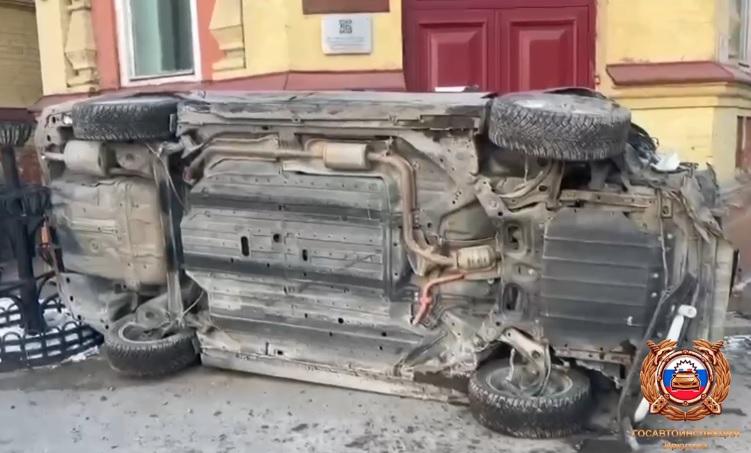 «Автомобиль Honda Fit Shuttle столкнулся с машиной Mitsubishi Outlander, после чего снес дорожное ограждение, дорожный знак и перевернулся. В результате инцидента водитель Mitsubishi доставлен в медицинское учреждение», – рассказали в ведомстве.