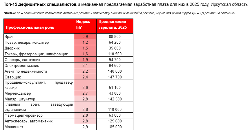 Аналитики hh.ru выявили 15 наиболее востребованных профессий в Иркутской области, где спрос значительно превышает предложение. Особенно остро регион нуждается в медицинских работниках – на одну вакансию врача приходится менее одного резюме.