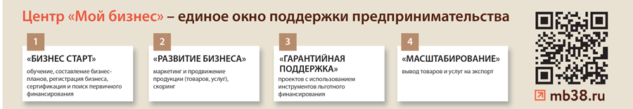 Реализуется Центром «Мой бизнес» Иркутской области в рамках национального проекта «Малое и среднее предпринимательство и поддержка индивидуальной предпринимательской инициативы».