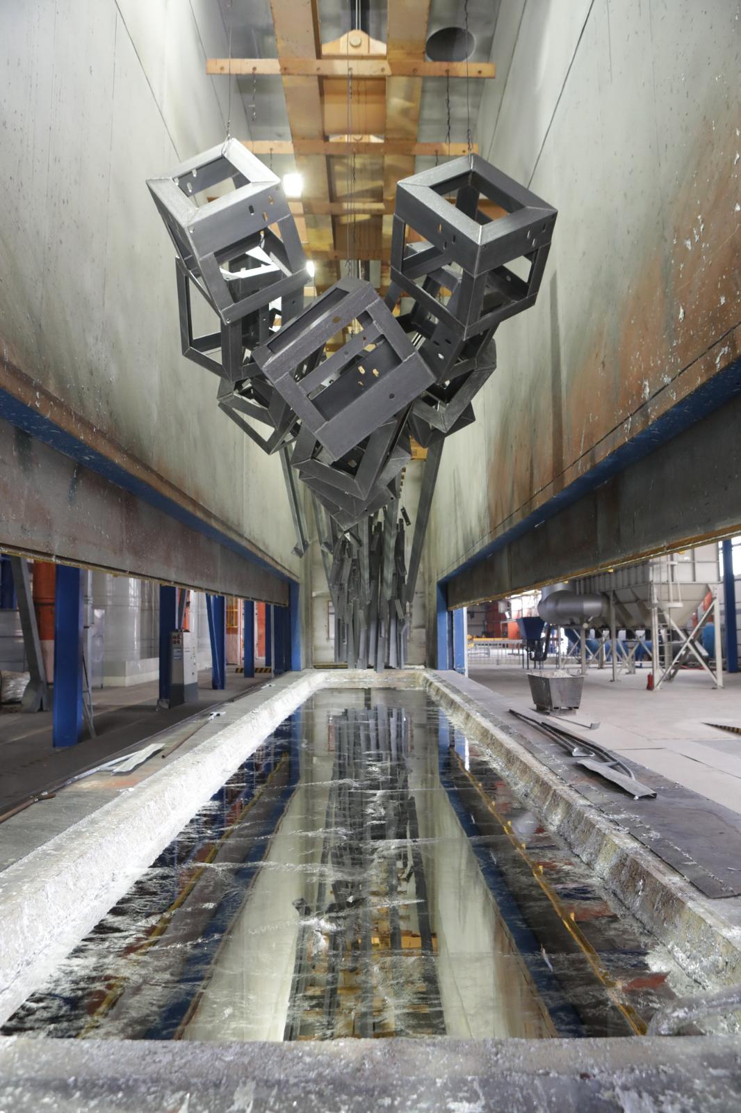 Цинкование – пожалуй, самая эффектная операция. Конструкцию подают к ванне, полной расплавленного цинка. Звучит сигнал – и сверху опускается герметичный купол: дальше за процессом можно наблюдать только в небольшие окошки. А там деталь медленно погружается в жидкость, над поверхностью показывается белый дымок. Зрелище завораживает! Несколько секунд – и конструкцию поднимают, уже ярко-серебристую, отправляют на просушку и затем на так называемый белый стеллаж, где она дожидается проверки и отправки заказчику.