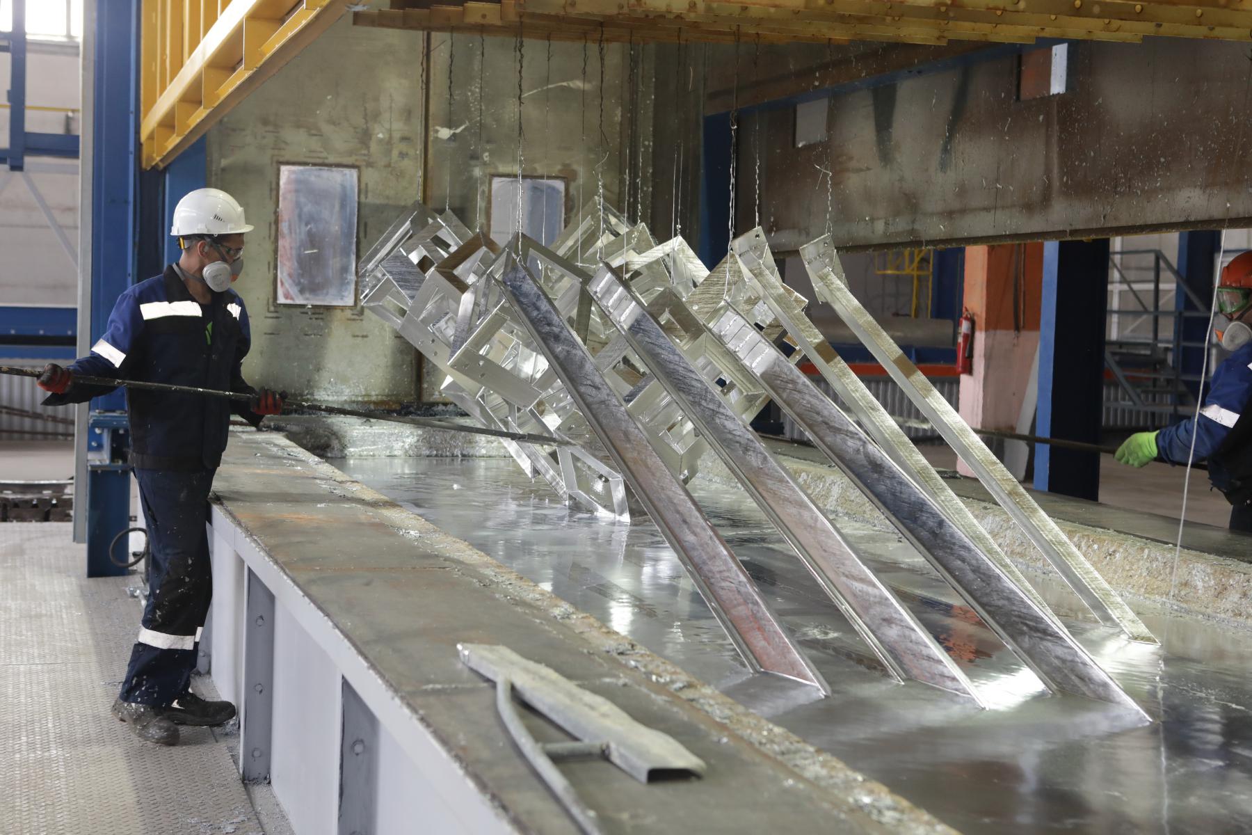 Цех цинкования – сердце завода – поражает своими масштабами. Здесь происходит полный цикл превращения металлических «исходников» в серебристые конструкции, которые прослужат не один десяток лет.
