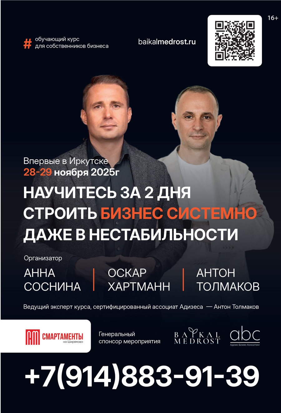 – Об очередной упущенной возможности для дальнейшего развития и себя, и своего бизнеса. Конечно, на выступления Оскара можно съездить в Москву, или даже в Красноярск, где он выступит в рамках своего стендап-тура. Но наш формат курса уникален тем, что это будет реальная учёба. Кроме того, в Иркутске выступление Оскара впервые пройдёт совместно с полноценным двухдневным обучающим курсом от «Адизес Бизнес Консалтинг». Это эксклюзив, моя идея и реализация. Считаю, это действительно уникальная возможность – компактно, за два дня пройти очень сильную программу, не выезжая из Иркутска, лично пообщаться с сильнейшими гуру бизнеса, обсудить услышанное с коллегами.