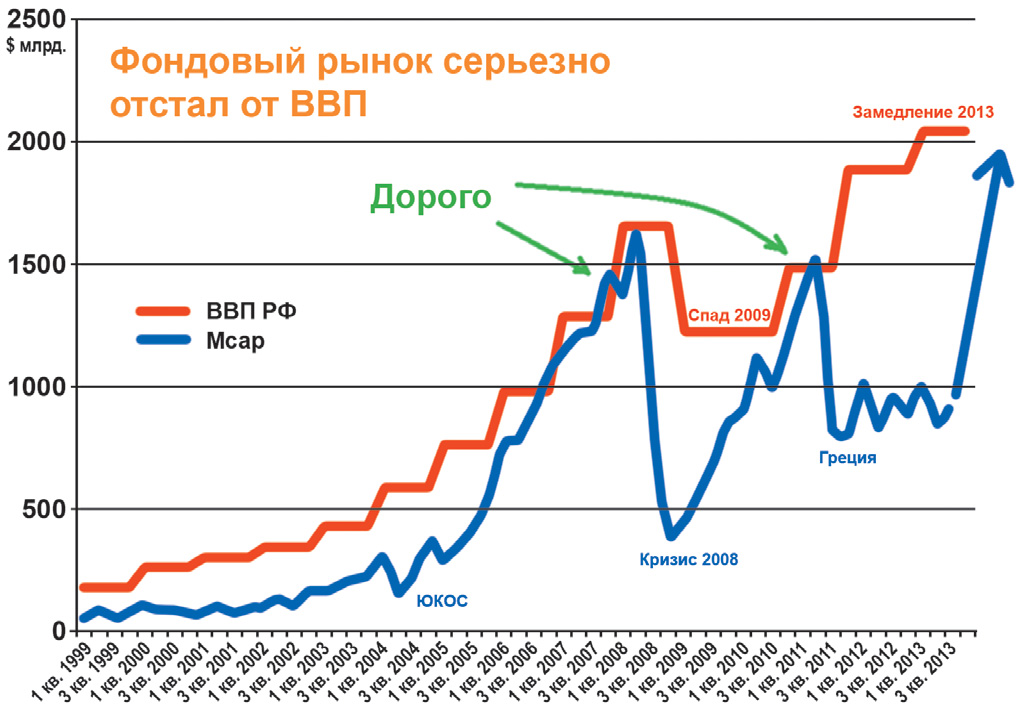 Во-первых, если мы говорим о прогнозах на акции, то важнее не то, как закончится 2013 год, а то, будет ли рост ВВП в 2014 году. Экономика развитых стран стремительно восстанавливается. Кризис в Европе шел 1,5 года, и он уже закончен. В следующем году экономика Еврозоны вырастет более чем на 1%. Еще более усилит рост Азия. Это поможет вырасти и России. Об этом пока никто не говорит.
