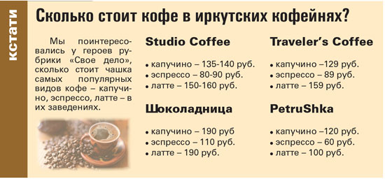 – В «Traveler’s Coffee» налажен аудит кофеен. Раз в 2-3 месяца нас навещает аудитор сети. Каждая составляющая кофейни рассматривается отдельно: сервис, качество продуктов кухни, бара, интерьер. Иркутская кофейня в лидерах в России по уровню качества.