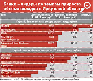Тройку банков-лидеров по объемам вкладов населения в Иркутской области возглавляет Сбербанк. На втором месте – ВТБ24, на третьем – Восточный экспресс банк. Интересно, что в топ-10 крупнейших банков на рынке вкладов в Приангарье уже второй год подряд вошли три региональных банка: ВЛБАНК, Братский АНКБ и Гринкомбанк.