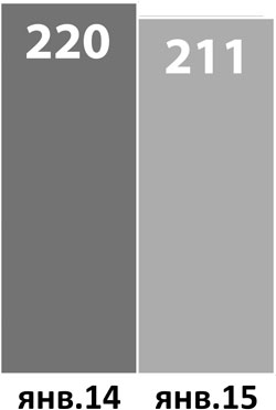 Про средний чек и посещаемость. Показатели выручки и среднего чека особенно не изменились, немного выше ожидаемых. Январь в нашем формате входит в категорию «не сезон», есть естественный отток Гостей, в рамках показателей января 2014 года.