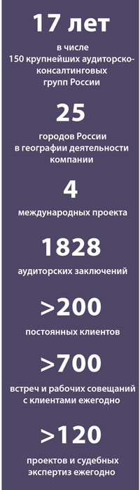 – Обязательный аудит – наш основной вид деятельности. Можно смело сказать, что мы в нем состоялись и зарекомендовали себя. Этой услугой у нас пользуются более 80 постоянных клиентов.