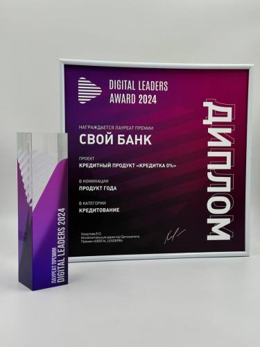 Свой Банк признан победителем премии Digital Leaders Award 2024 в категории «Кредитование». Продукт Банка Кредитка 0% занял первое место в номинации «Продукт года».