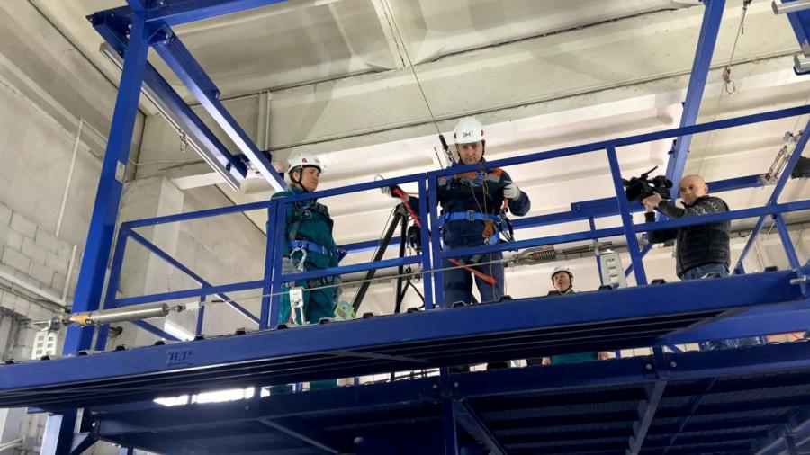 Тренировочная платформа оснащена современным специализированным оборудованием: канатными системами, страховочными привязями и анкерами для отработки сценариев любой сложности – от эвакуации пострадавшего из замкнутого пространства до спуска по канату.