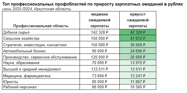 Напомним, что медианная зарплата в Иркутской области составила 73,8 тыс. рублей, что немного ниже среднего показателя по России — 75,5 тыс. рублей. По сравнению с прошлым годом зарплатные предложения увеличились на 5,06 тыс. рубля, а с января по июнь 2025 года рост составил 4%, или 3,1 тыс. рублей.