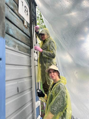 «Мы провели хороший день — это была встреча друзей, объединённых одной целью, постараться вернуть старинному дому прежнюю красоту. Перед нами стояла задача — очистить и освежить деревянные поверхности фаcада, окон и элементов декора. Мы очистили от старой краски, а затем заново покрасили окна и ставни. Результат оказался потрясающим: фасад засиял, приветствуя прохожих обновленным обликом. Хозяйка угостила нас ароматным чаем и домашними лакомствами — блинами и капустным пирогом собственного приготовления», — Ольга Шаракшанэ, участница «Фасадника».