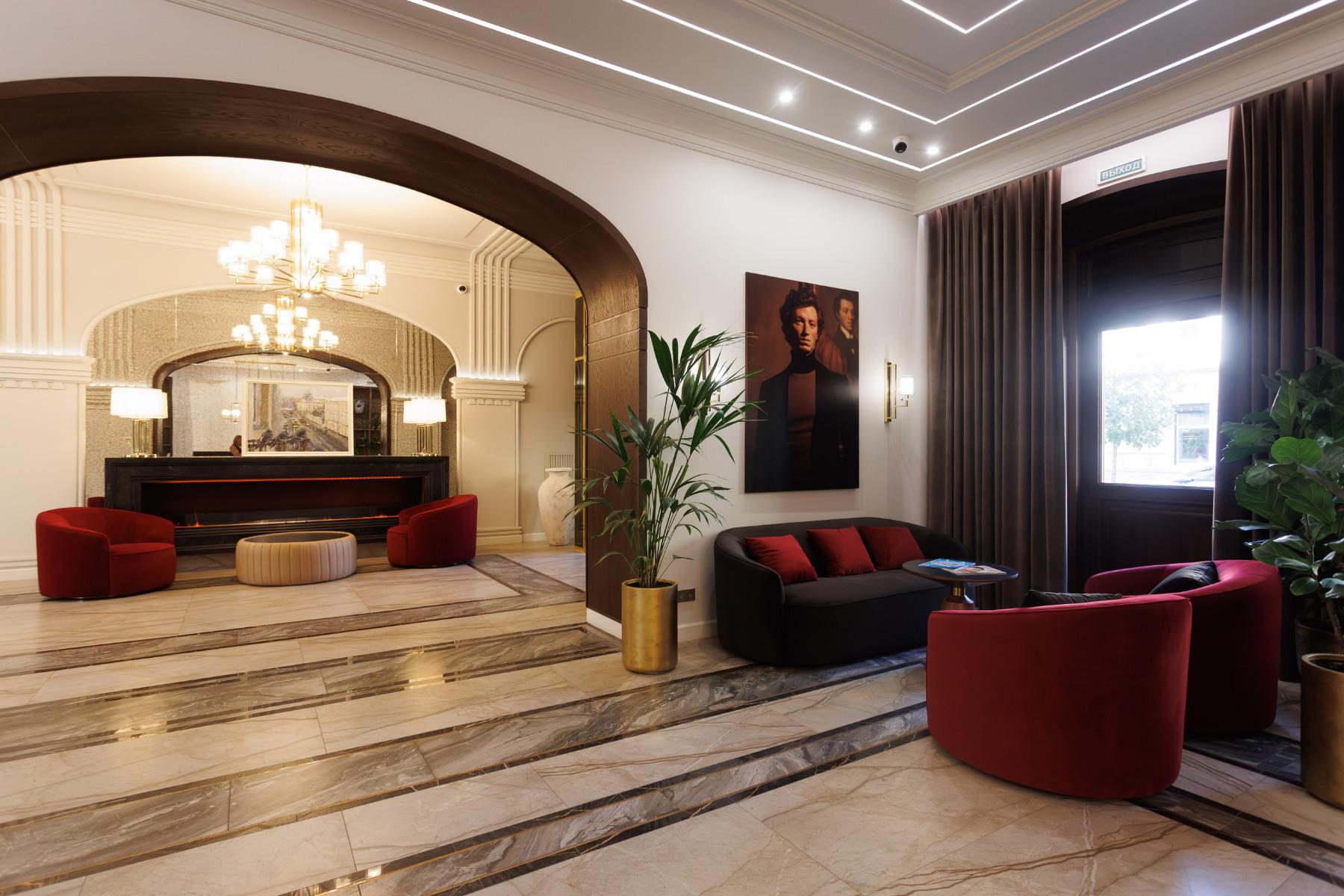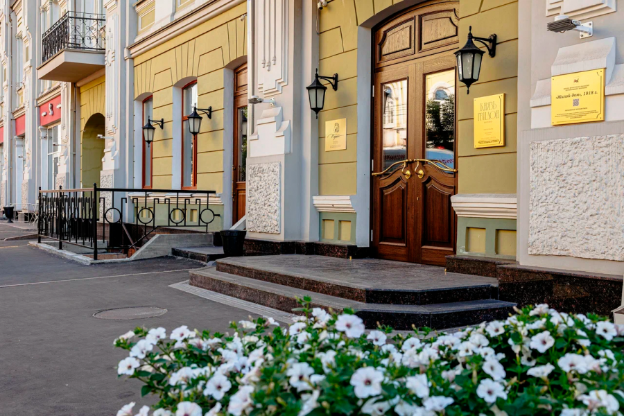 Здание премиум-отеля «Пушкин» – историческое. Оно было построено в конце XIX – начале XX века. Авторы проекта отреставрировали особняк, максимально воссоздав его таким, каким он был сто с лишним лет назад. «Широкая лестница, просторный вестибюль, арочные проемы, лепнина и орнаменты – всё хранит печать времени, позволяет прикоснуться к истории», – рассказали на экскурсии.