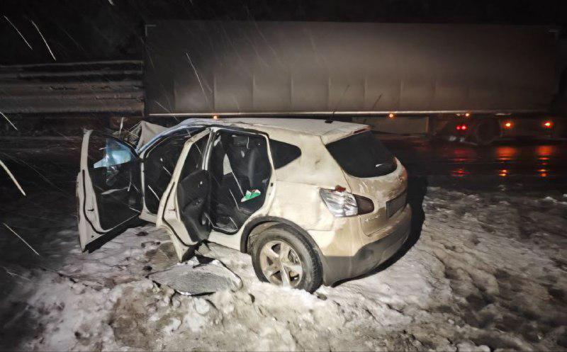 «Предварительно, водитель автомобиля Nissan Qashqai не справился с управлением, совершил наезд на ограждение, а затем выехал на полосу встречного движения, где столкнулся с большегрузом Scania R440», – рассказали в региональной полиции.