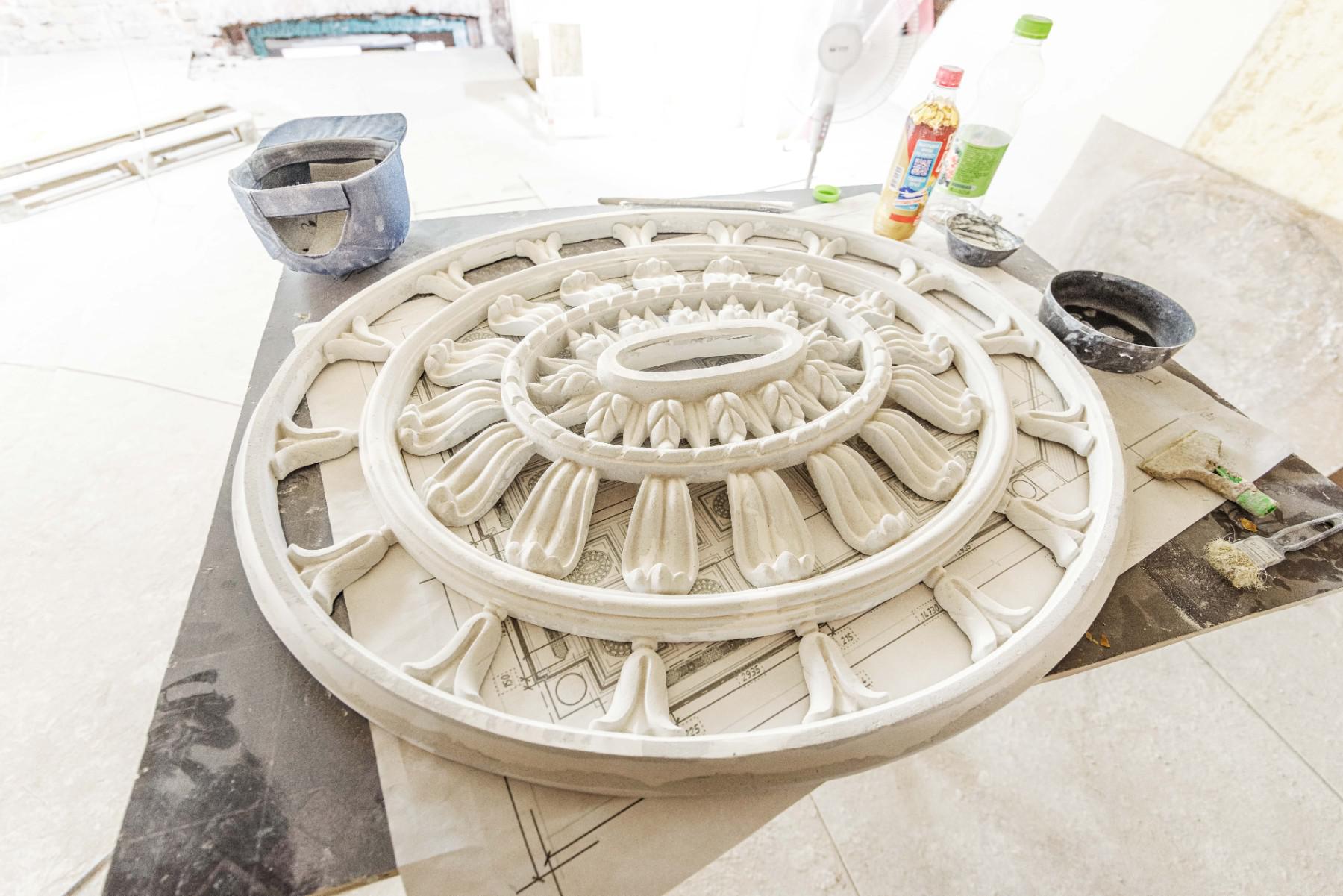 За год в Доме Радио демонтировали все не имеющие ценности перегородки и конструкции – из здания вывезли 12 тысяч кубометров строительного мусора. Одновременно реставраторы на 90% завершили расчистку лепных элементов от поздних наслоений и загрязнений. Специалисты продолжают реставрационные мероприятия в аванзале, исторических студиях и других парадных помещениях, возвращая к жизни исторический облик интерьеров.
