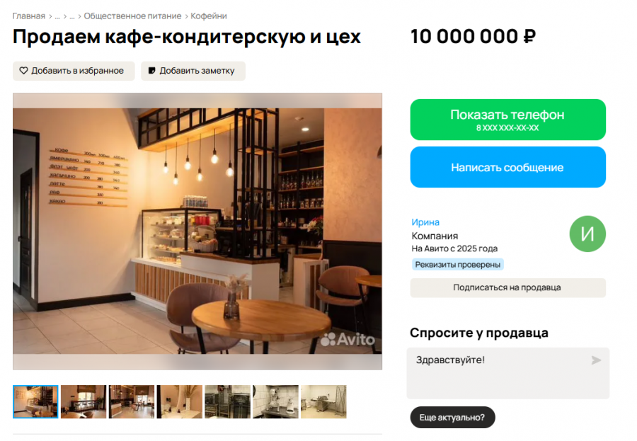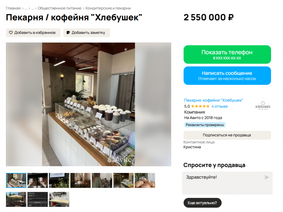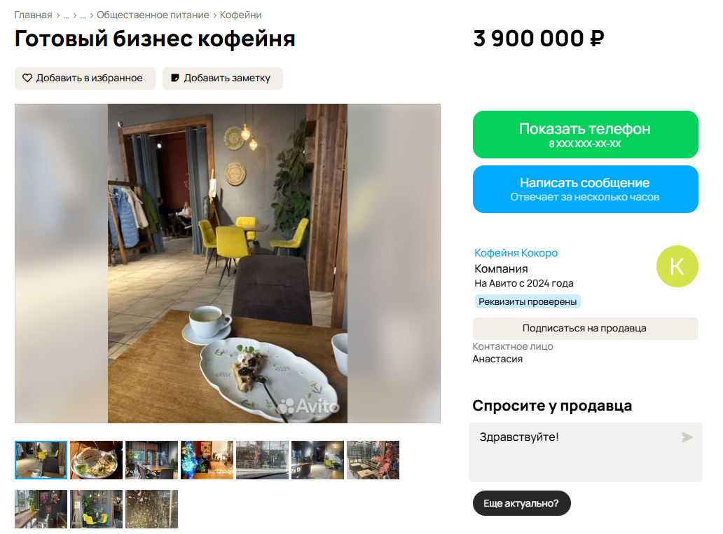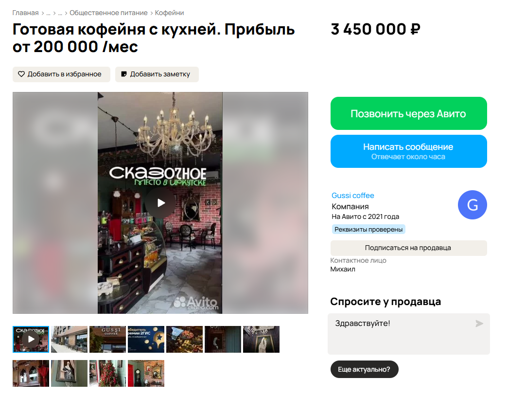 Кофейня Gussi предлагается за 3,45 млн рублей с оборотом более 11 млн рублей за 2024-2025 годы и выручкой от 600 тыс. до 1 млн рублей в месяц.