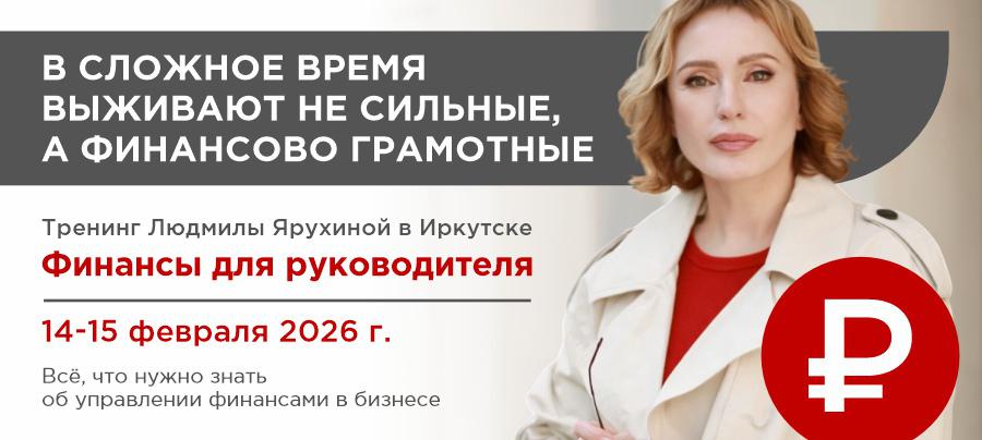 14–15 февраля 2026 года в Иркутске состоится интенсивный тренинг «Финансы для руководителя», который проведет финансовый директор и автор бестселлера «Финансы для нефинансистов» Людмила Ярухина. Мероприятие предназначено для собственников бизнеса, руководителей, топ-менеджеров и предпринимателей, желающих системно управлять деньгами и прибылью компании.