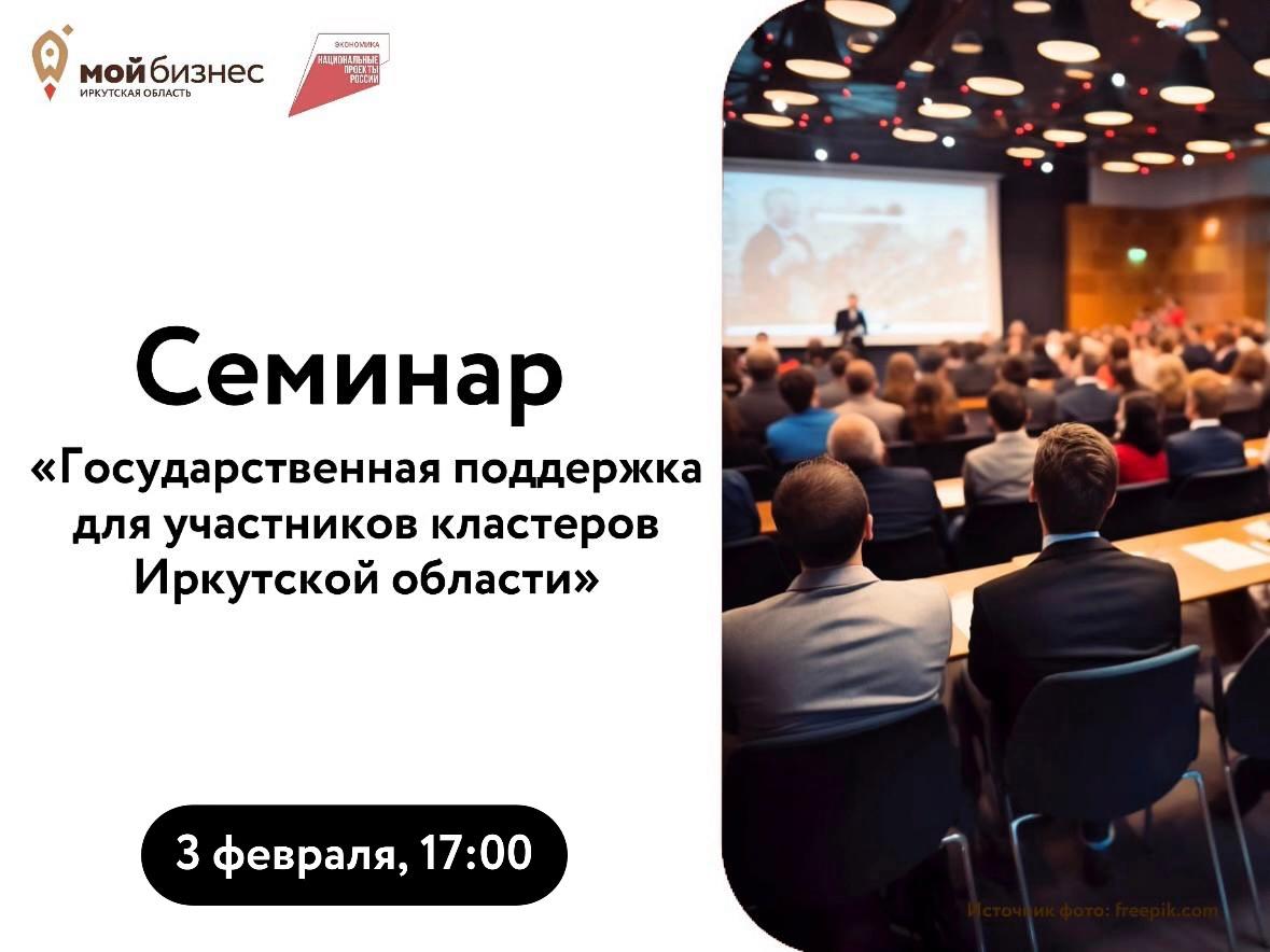 3 февраля центр "Мой бизнес" приглашает на онлайн-семинар «Государственная поддержка для участников кластеров Иркутской области».
