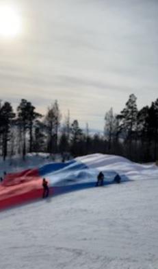 «Сегодня в Листвянке прошел юбилейный V флешмоб, приуроченный к 23 февраля — Дню защитника Отечества. <…> Главным событием стало торжественное разворачивание самого большого флага Российской Федерации. Его масштаб впечатлял: полотно размером сравнимое с футбольным полем», – рассказали в организации.