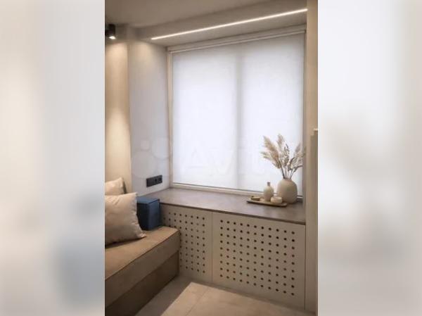 В мини-кухне в шкафах спрятаны стиральная машина, холодильник, вытяжка. Есть чайник и плита. Имеются теплые полы, современное освещение. Заменен радиатор отопления, обновлена входная дверь.