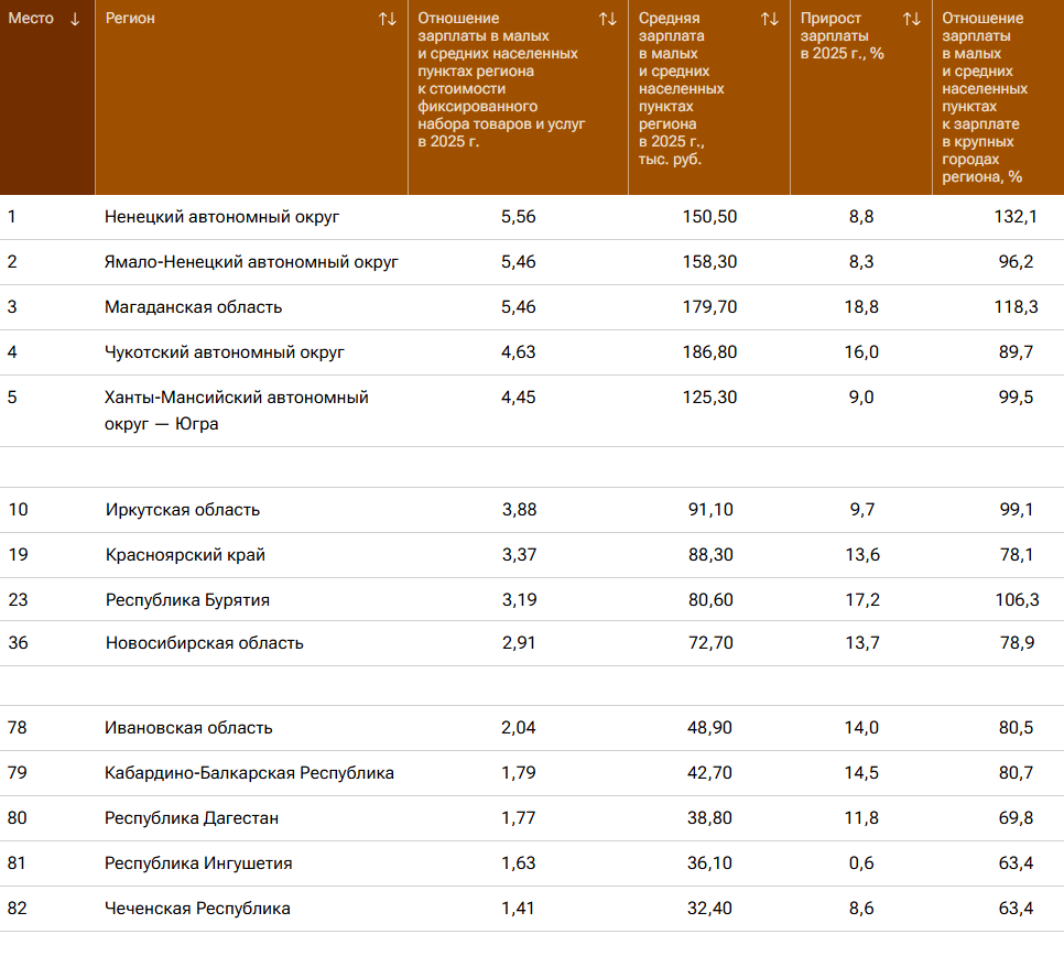 РИА Новости опубликовало рейтинг регионов России по зарплатам в малых и средних населенных пунктах за 2025 год. Средний показатель по стране превысил отметку в 100 тыс. рублей, а темп ее годового прироста достиг 13,5%.