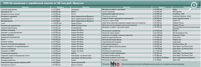 ТОП-50 вакансий с заработной платой от 35 тыс.руб. Иркутск.