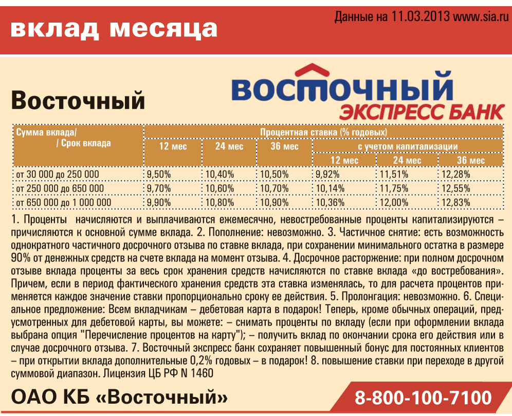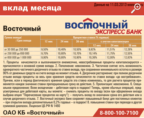 Вклад месяца от Восточного экспресс банка: ставки с учетом капитализации достигают 12,83% годовых