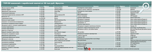 ТОП-50 вакансий с заработной платой от 35 тыс.руб. Иркутск.