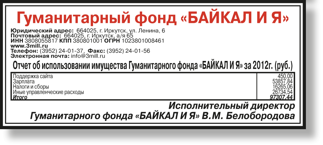 Гуманитарный фонд "Байкал и Я". Отчет об использовании средств за 2012 год