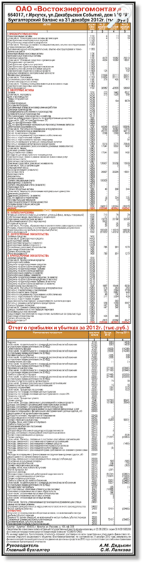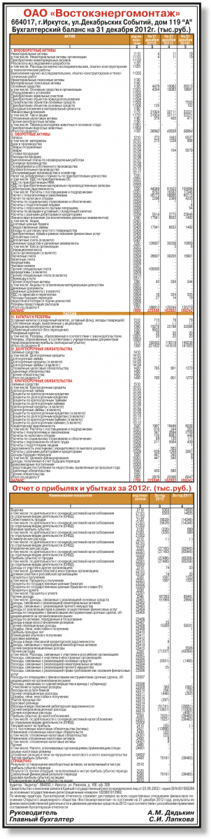 ОАО "Востокэнергомонтаж". Годовая бухгалтерская отчетность за 2012 год