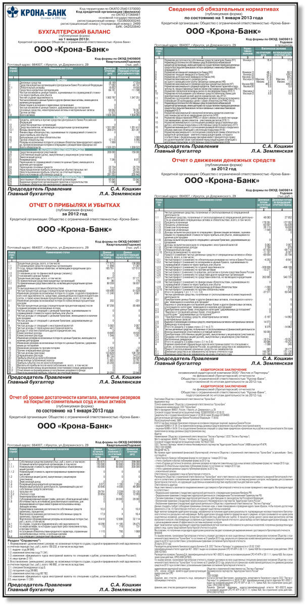 ООО "Крона-банк". Годовая бухгалтерская отчетность за 2012 год