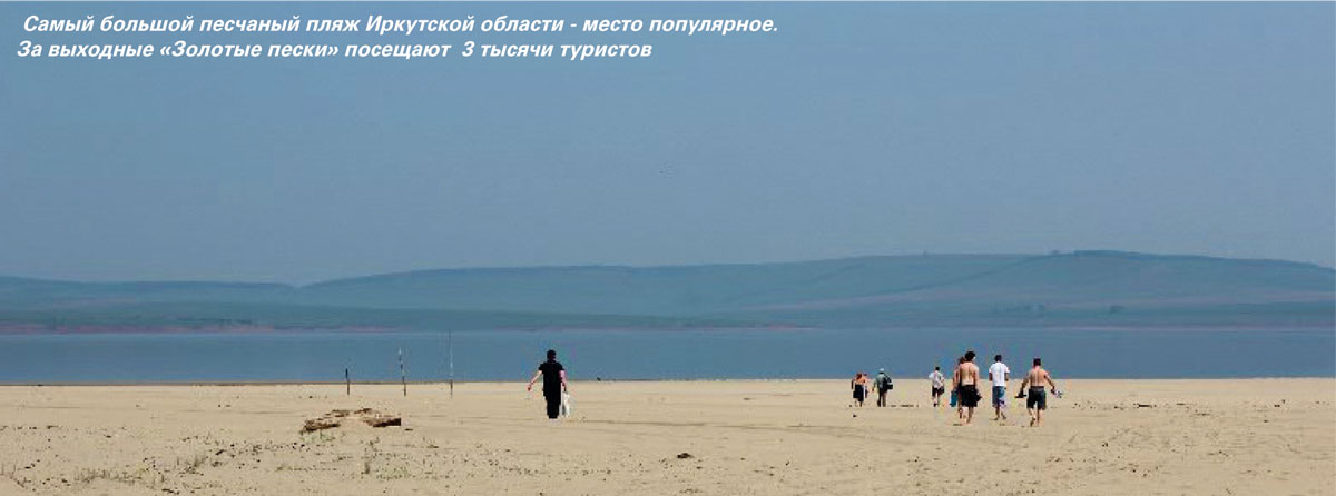 Шикарный пляж, песчаное дно, теплая прозрачная вода, которая прогревается до 25 градусов – не зря Братское водохранилище местные жители гордо называют морем. Место идеально для отдыха во всех смыслах. Даже от такой напасти как комары гости «золотых песков» избавлены полностью. Не удивительно, что пески так полюбилось людям – за выходные пляжи посещают около 3 тысяч туристов.