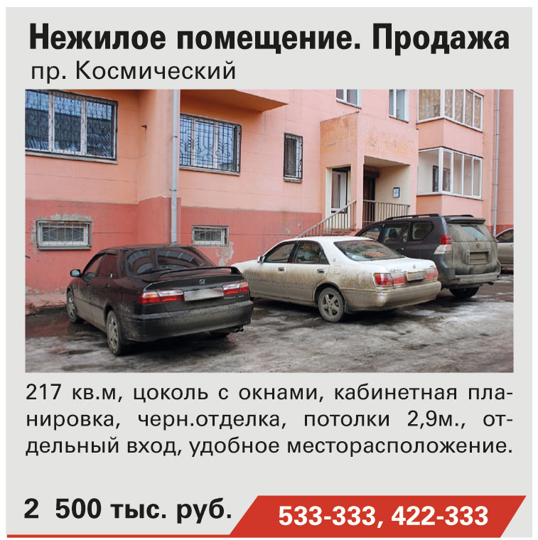 Продается нежилое помещение 217 кв.м. по пр. Космический. Стоимость 2,5 млн.р.